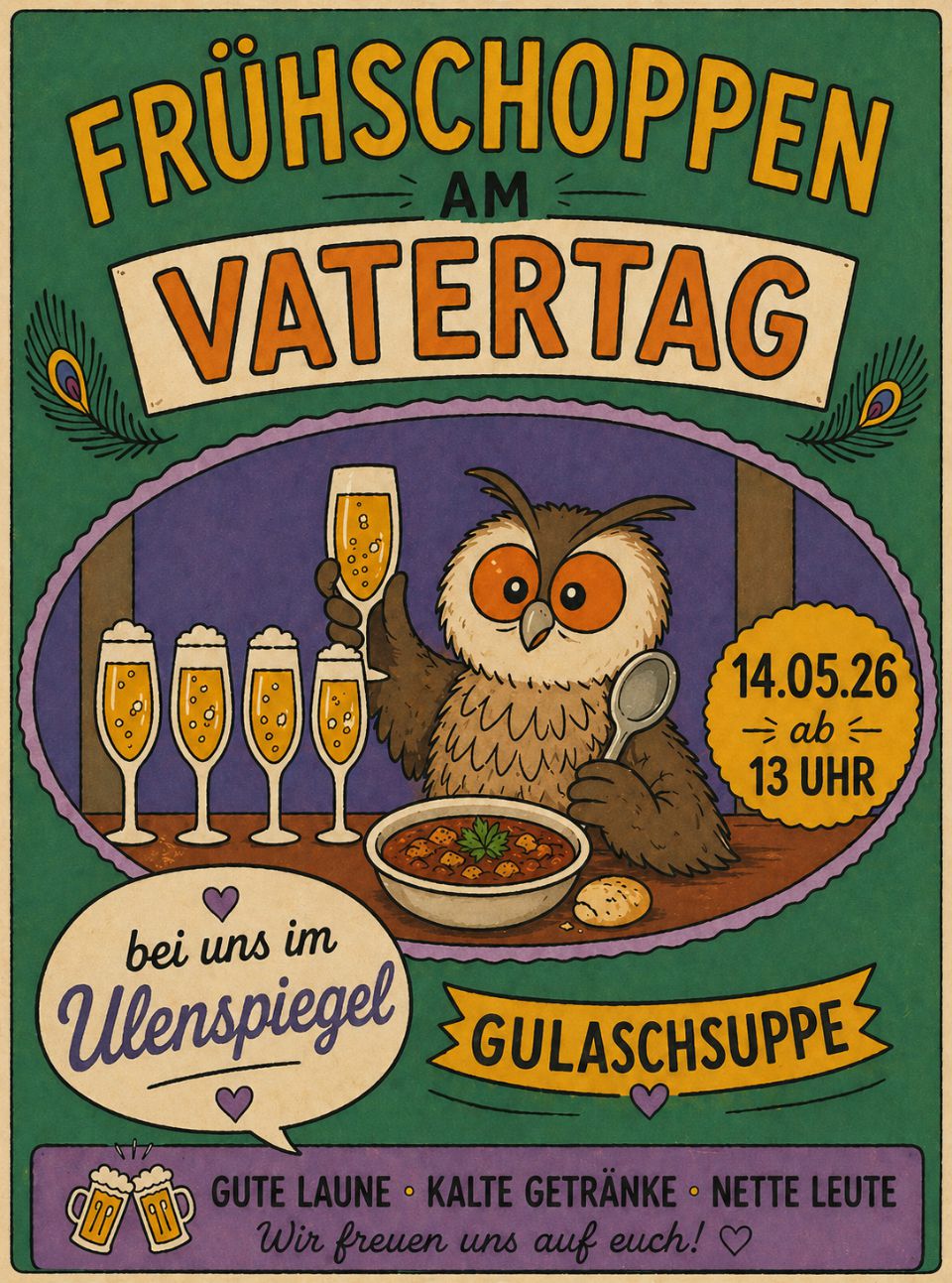 Die Ule ist der perfekte Ort, wenn ihr schon früh Lust auf ein Bierchen habt: Unter der Woche öffnen wir ab 16 Uhr, samstags sogar schon um 11 Uhr. Ideal für einen entspannten Frühshoppen!